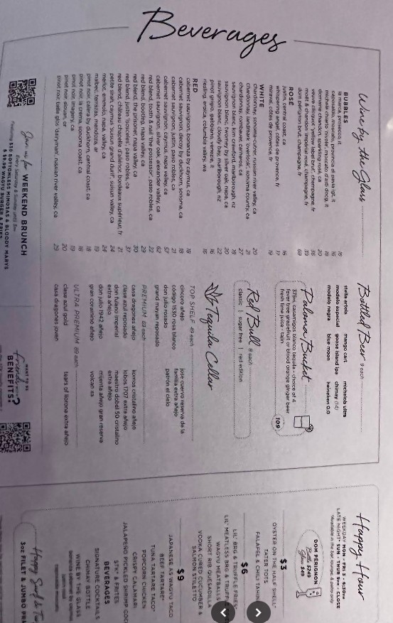 Amazing happy hour menu available on the patio and bar area. Perfect for small bites and sips! Portioned just right, so you can choose a few and not feel overstuffed! Staff were helpful and attentive, including a visit from the manager.